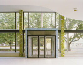State-of-the-art technical equipment including broadband cabling, elevators, and efficient air conditioning are naturally available in the new Karl-Marx-Allee 35. The best part: highly insulating glass windows, external sun protection, heat exchangers, and night cooling ensure that the building will operate completely emission-neutral in the future: as good as new, as beautiful as before.